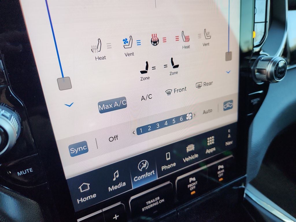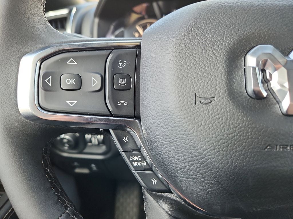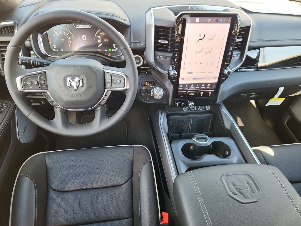 Step inside the spacious cabin and you'll be surrounded by premium materials and thoughtful amenities. The Laramie Level 2 Equipment Group provides a 14.4-inch touchscreen display, a 12-inch TFT color cluster, and a stunning 19-speaker harman/kardon audio system, seamlessly integrating technology and entertainment.