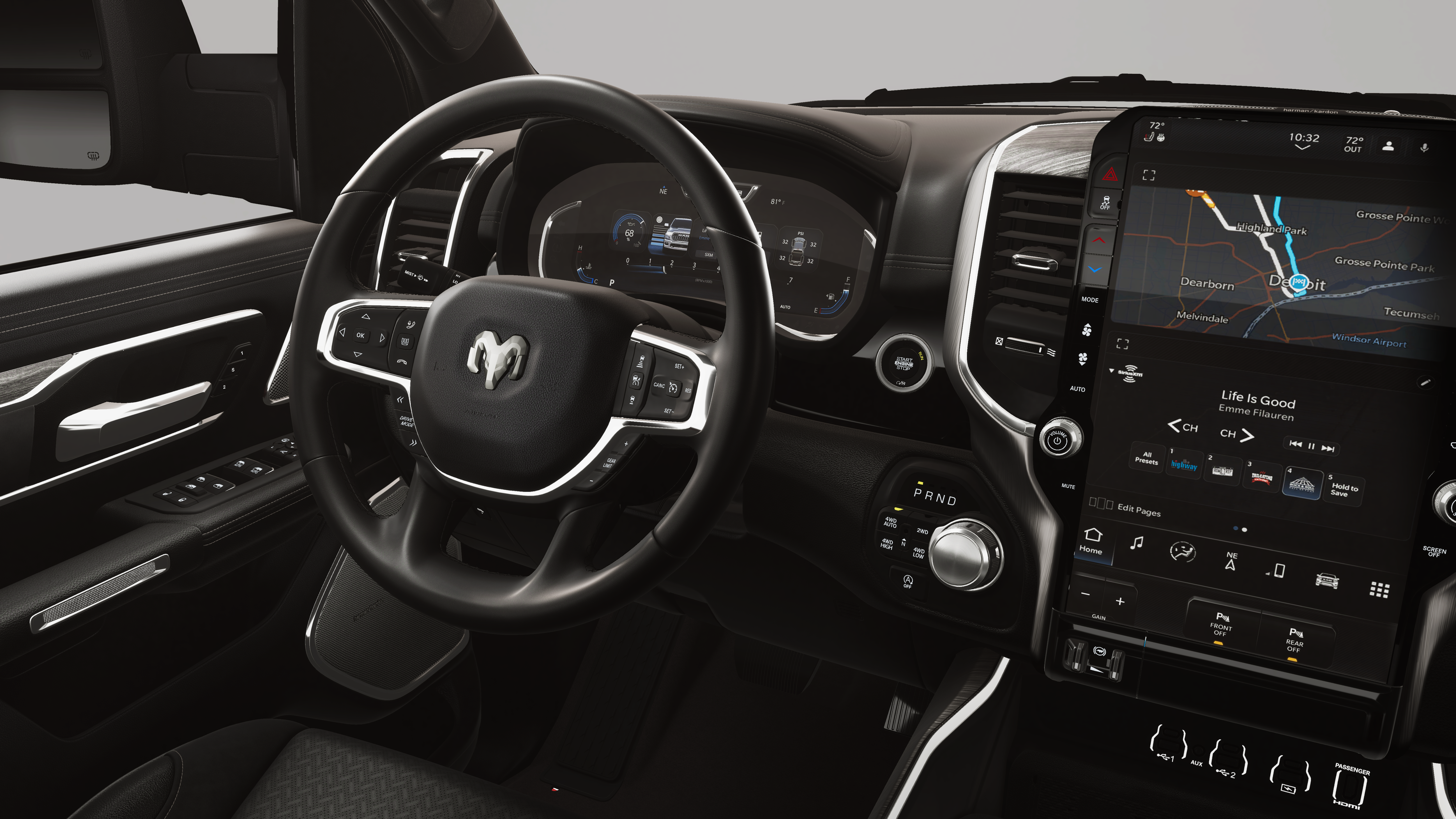 Tailored to the discerning driver, the Laramie trim level offers a wealth of premium features, including the exclusive NIGHT EDITION package. Elevate your presence on the road with the bold, blacked-out accents, 22-inch forged aluminum wheels, and the striking Molten Red Pearlcoat exterior. The Laramie Level 2 Equipment Group further enhances your driving experience with a 14.4-inch touchscreen display, a premium harman/kardon sound system, and a 12-inch TFT color cluster display.