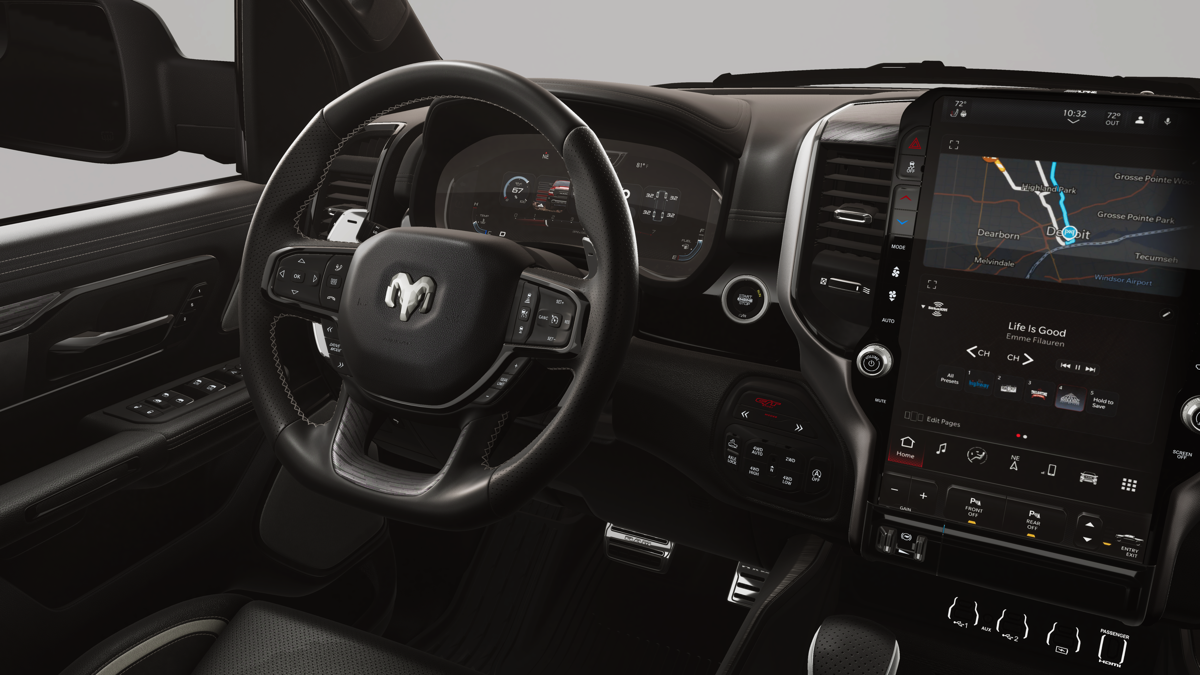 - 4-Wheel Disc Brakes w/4-Wheel ABS, Front Vented Discs, Brake Assist, Hill Descent Control, Hill Hold Control and Electric Parking Brake