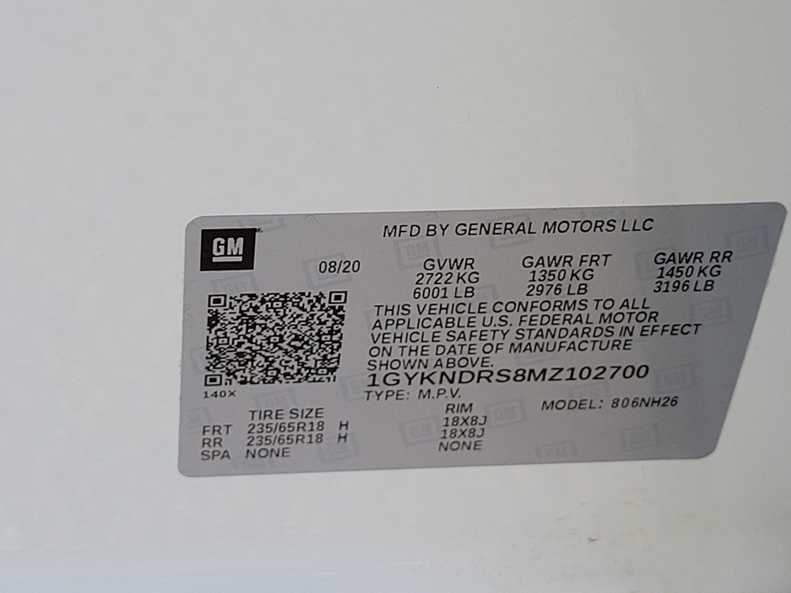 - Tires, P235/65R18 all-season, H-rated, blackwall (Upgradeable to (QNU) P235/55R20 all-season tires when (Q6R) 20" 6-Split Spoke alloy wheels with Polished/Android finish is ordered.)