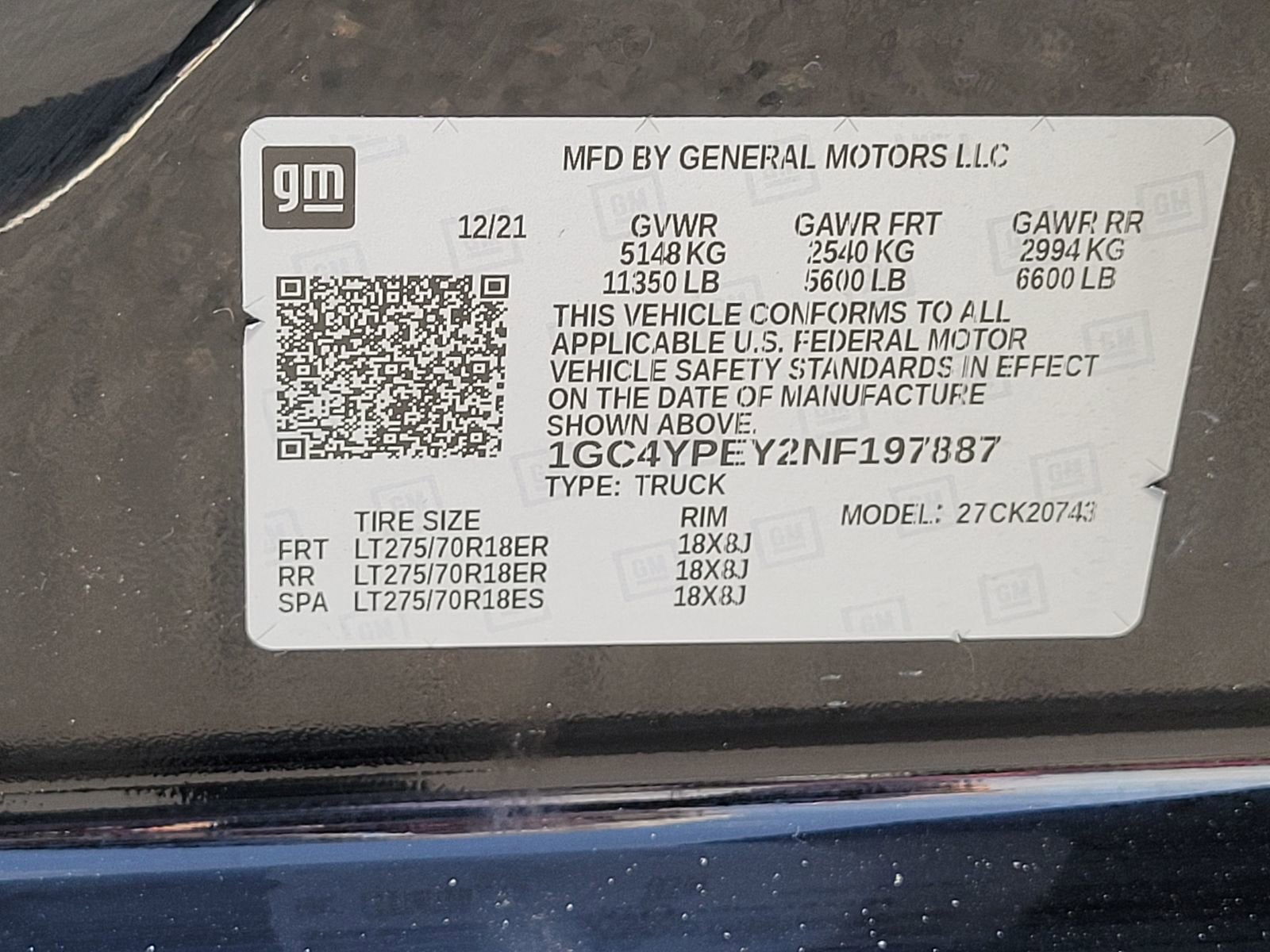 - 18" LT275/70R18 all-terrain, blackwall spare tire
