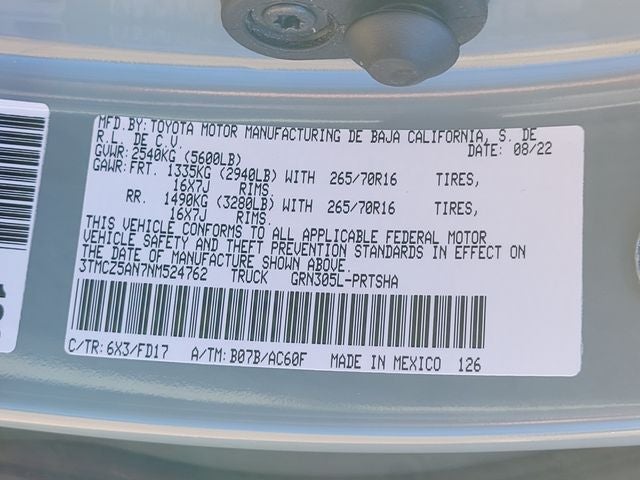 - Vehicle Name: Toyota Tacoma 4WD